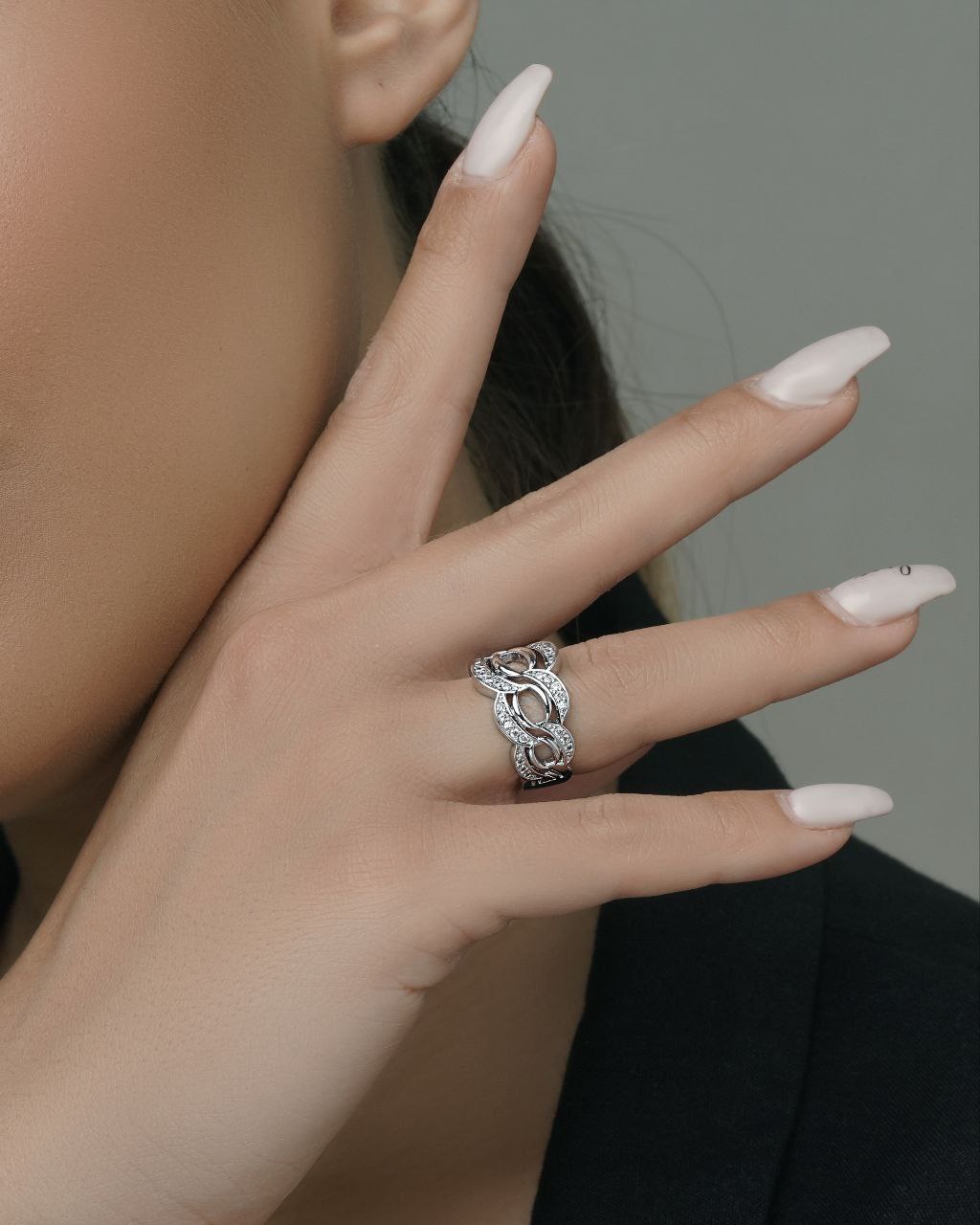 انگشتر کارتیر نگین اتمی بافتی فری سایز نگین مخراج رنگ طلایی.سفید