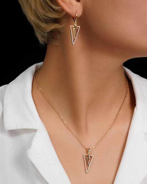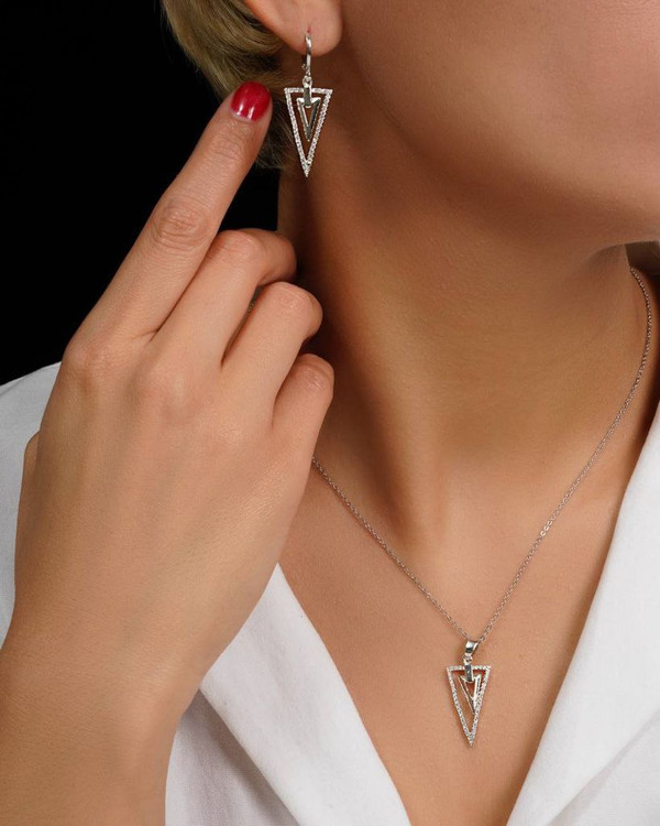 نیمست گوشواره و گردنبند زنانه هندسی مثلثی (کد ۲۲۰۰۵۵)