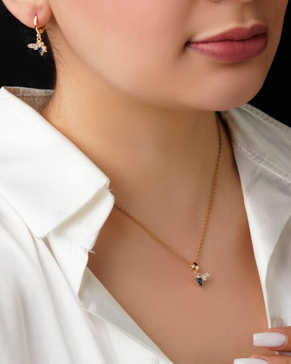 نیم ست گردنبند و گوشواره طرح سنجاقک